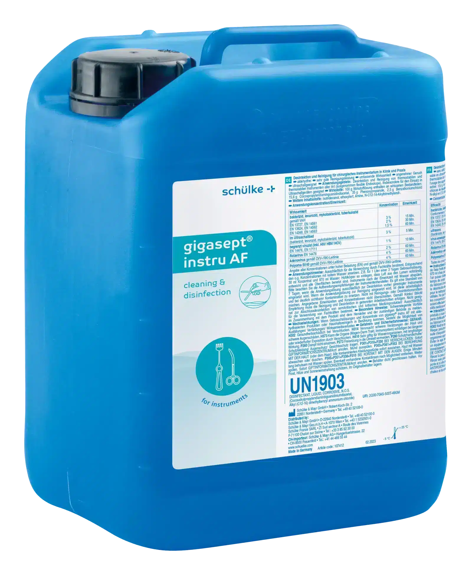 gigasept® instru AF – aldehydfreies Desinfektions- und Reinigungspräparat von Schülke. Für chirurgisches Instrumentarium in Klinik & Praxis, auch im Ultraschallbad geeignet. Umfassend wirksam (bakterizid, levurozid, mykobakterizid, begrenzt viruzid). Konzentrat, Dosierung 1,5–4 %, VAH- und IHO-gelistet.