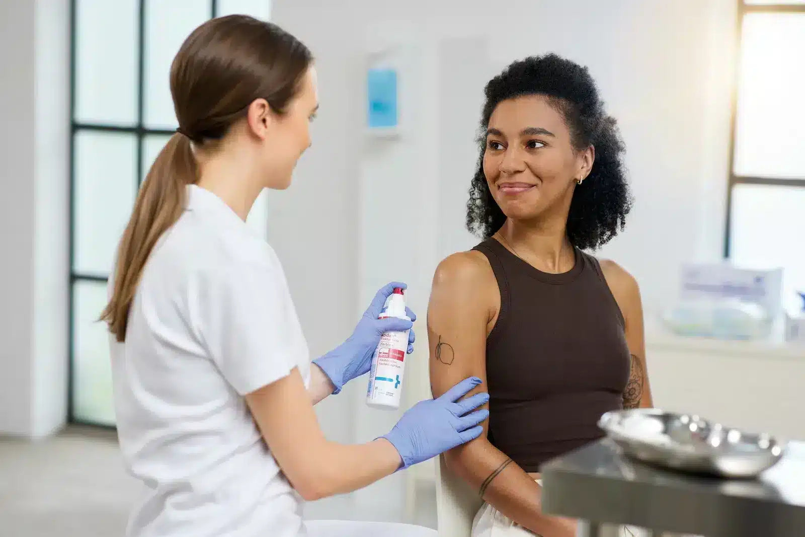 • Haut vollständig benetzen (besprühen oder mit Tupfer auftragen)