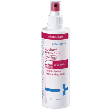 Das gebrauchsfertige Hautantiseptikum kodan® Tinktur forte von Schülke ist farblos und überzeugt mit sofortigem Wirkungseintritt, langanhaltender Wirkung und breitem antimikrobiellem Wirkungsspektrum. Es eignet sich ideal zur präoperativen Hautdesinfektion, postoperativen Nahtversorgung sowie zur hygienischen Händedesinfektion.
