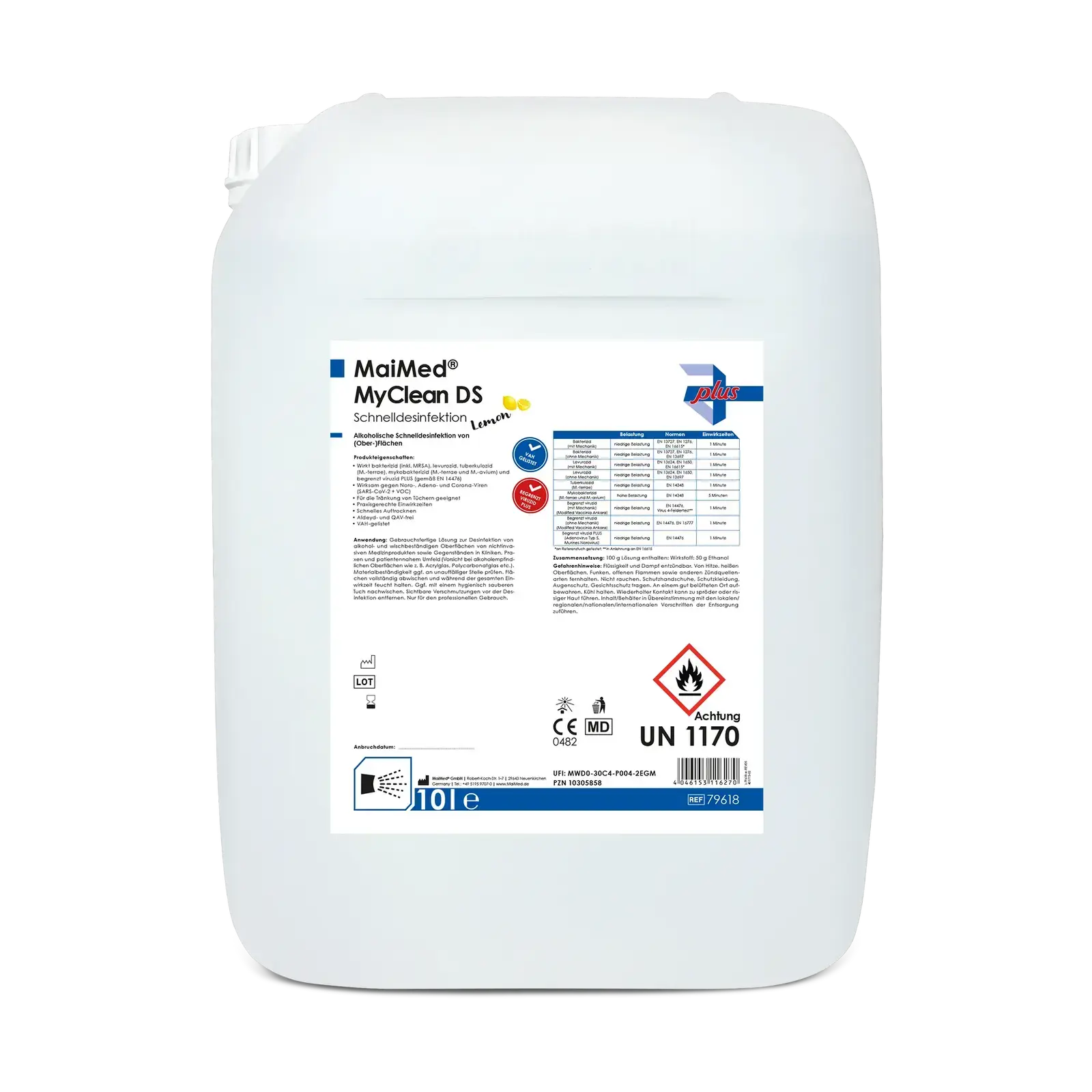 Das MaiMed® MyClean DS Duft ist ein hochwertiges, gebrauchsfertiges Schnelldesinfektionsmittel zur Anwendung auf alkohol- und wischbeständigen Oberflächen. Es bietet ein breites Wirkspektrum gegen Bakterien, Viren (einschließlich behüllter Viren wie Coronaviren) und Pilze. Zusätzlich ist es in verschiedenen Duftvarianten erhältlich, die für eine angenehme Raumatmosphäre sorgen.