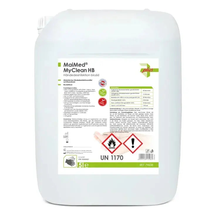 Das MaiMed® MyClean HB ist ein hochwirksames, alkoholisches Desinfektionsmittel auf Ethanolbasis, das speziell für die hygienische Händedesinfektion entwickelt wurde. Es bietet schnellen und zuverlässigen Schutz vor einer Vielzahl von Bakterien und Viren und ist dabei frei von Farb- und Parfümstoffen, was es besonders hautverträglich macht.