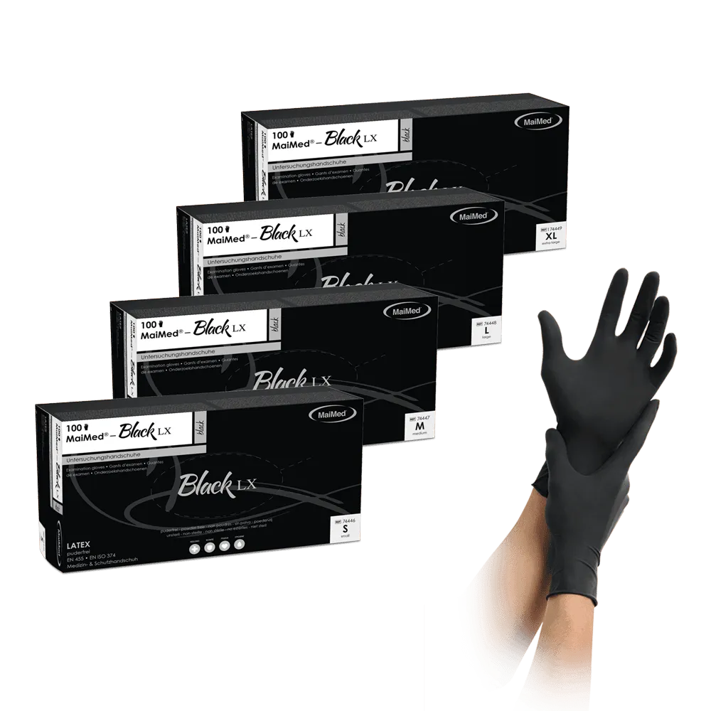 MaiMed® Black LX – Hochwertige schwarze Latex-Untersuchungshandschuhe für präzise Arbeiten