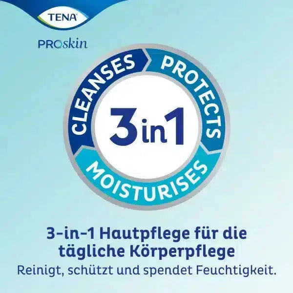 Als milde Alternative zu Seife und Wasser unterstützen TENA ProSkin Feuchttücher das Frischegefühl und eine gereinigte Haut, die frei von Gerüchen ist. Die Inhaltsstoffe sind dermatologisch getestet, seifen- und alkoholfrei.