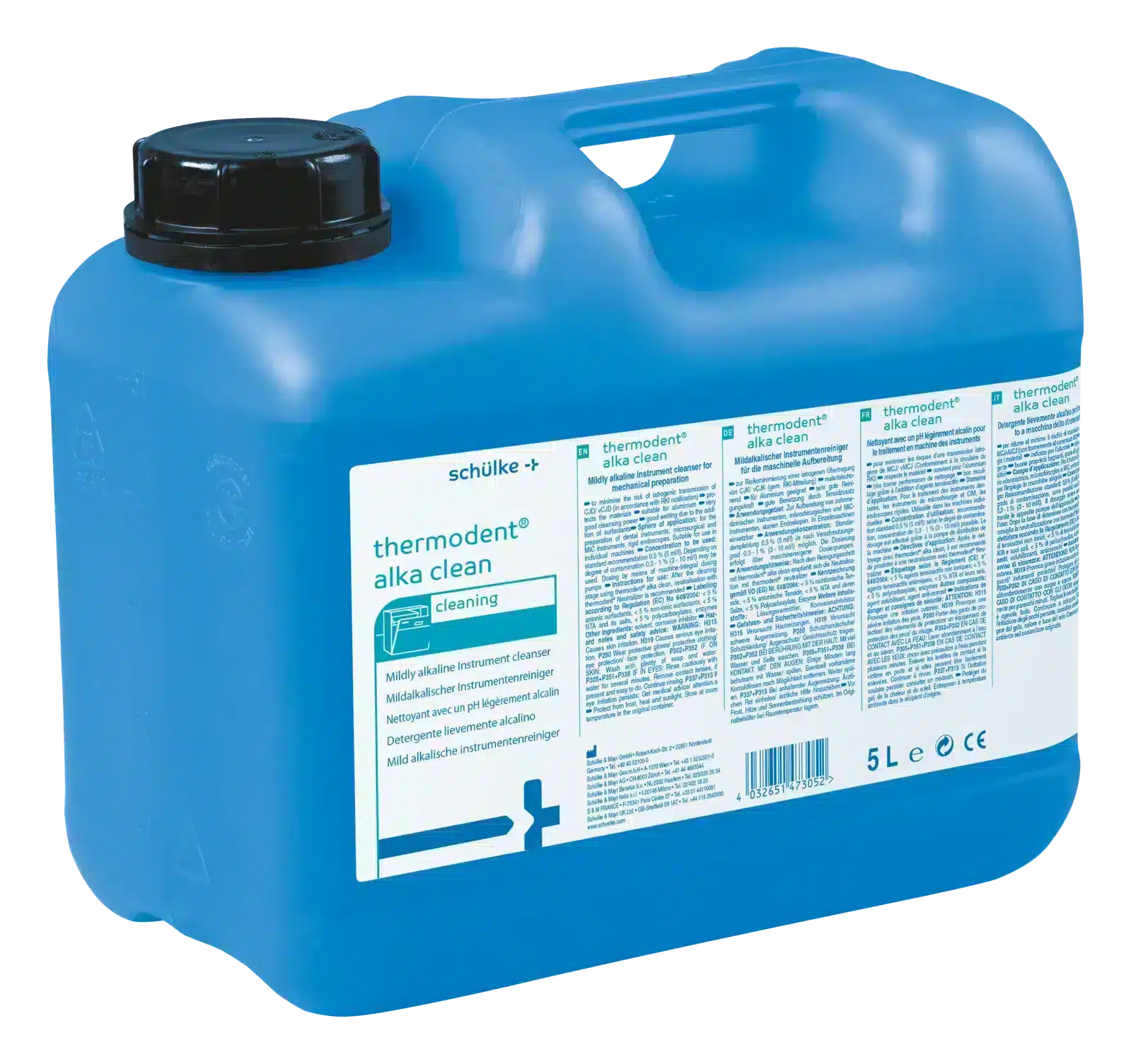 Der maschinelle Reiniger thermodent® alka clean ist speziell für die Reinigung von zahnmedizinischen Instrumenten und Zubehör entwickelt. Das Produkt bietet eine materialschonende Reinigung und zeichnet sich durch eine hervorragende Reinigungsleistung sowie gute Benetzungseigenschaften aus, die durch reinigungsaktive Tenside gewährleistet werden. Es ist besonders nützlich zur Risikominimierung einer iatrogenen Übertragung von Krankheiten wie CJK/vCJK gemäß den Empfehlungen des Robert Koch-Instituts.