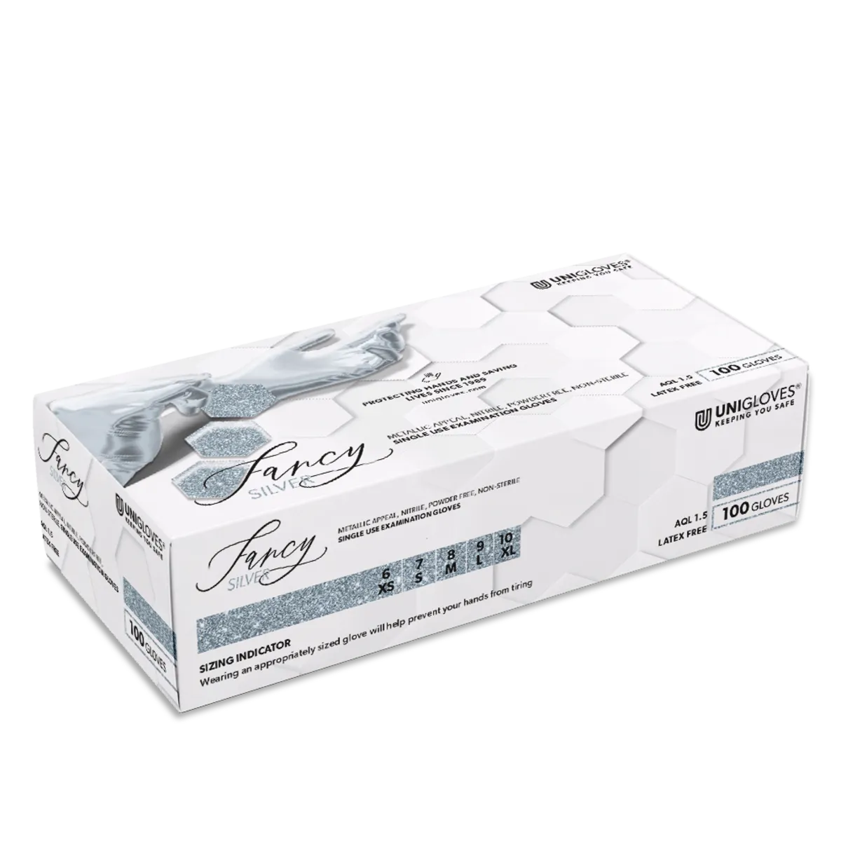 Fancy [ˈfɛnsi] ist nicht nur ein Ausdruck für etwas Ausgefallenes, sondern auch für unseren FANCY Handschuh. Dieser auffällige Einweghandschuh sorgt sowohl in der Gastronomie, im Lifestyle-Segment als auch im medizinischen Bereich für Aufsehen. Sein glänzendes Erscheinungsbild wird ein Highlight für Ihre Hände sein. Natürlich entspricht der Handschuh der PSA Verordnung (EU) 2016/425 und den europäischen Normen EN 374, EN 420 und EN 455. Die angerauten Fingerspitzen sorgen für optimalen Grip bei der Anwendung und eine beidhändige Nutzung ist durch die universelle Passform gegeben. Das wasserdichte Material schützt nicht nur vor Feuchtigkeit, sondern auch vor Viren, Pilzen und Bakterien. Darüber hinaus ist der FANCY Handschuh lebensmittelgeeignet.